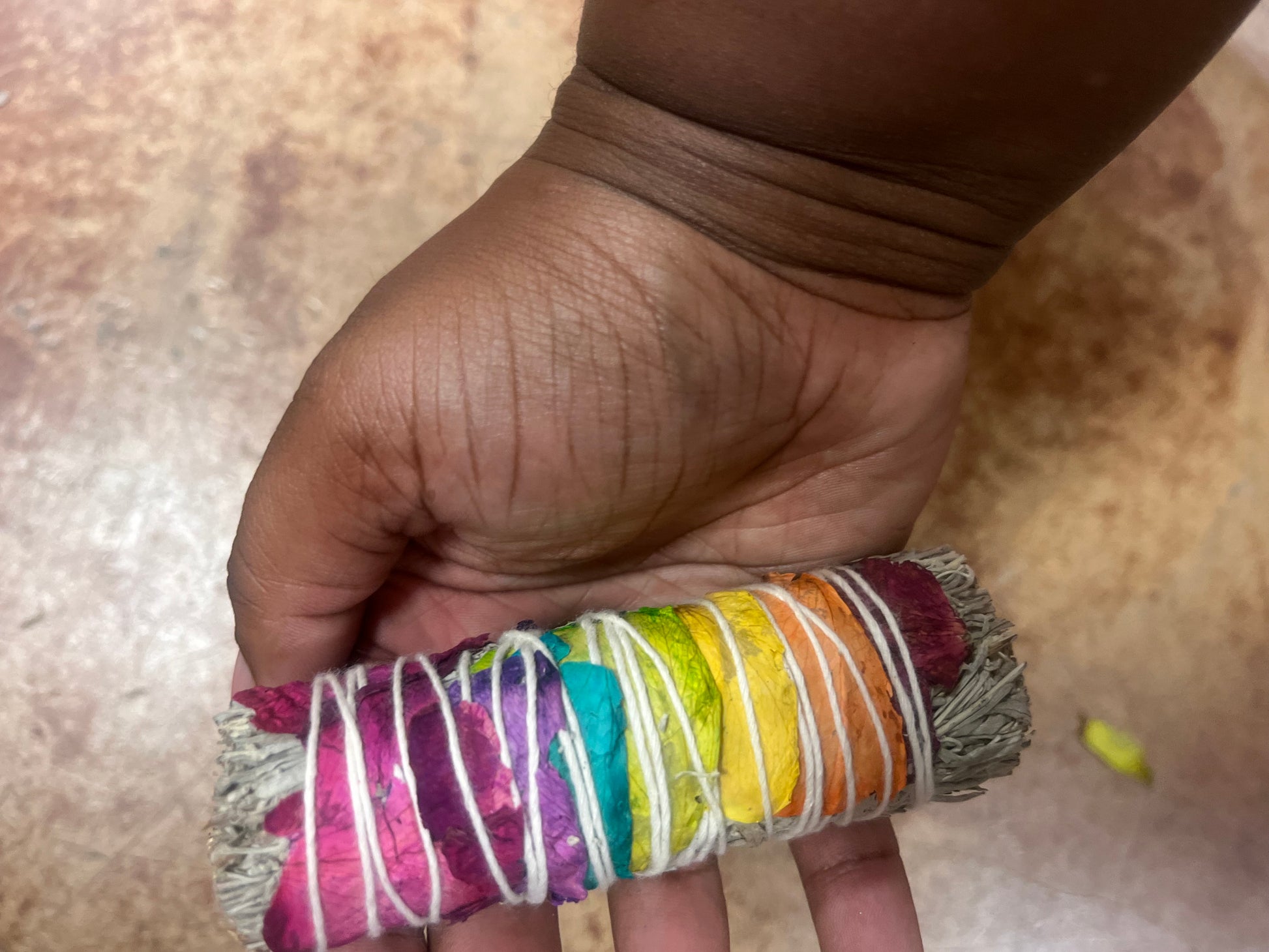 4 inch bundle of our farm, fresh white sage with rose petals naturally dried plant-based all natural dye rose petals for an amazing Roma